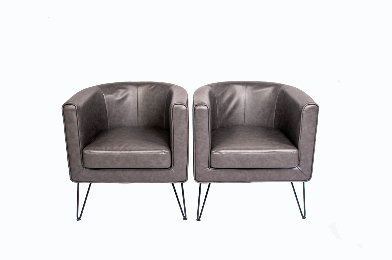 Grey Leather Barrel Side Chair
