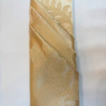 Linen luncheon napkin made from a soft, natural white fabric with a smooth texture and a subtle sheen, featuring a delicate lace detail along one corner for an elegant, refined look.
