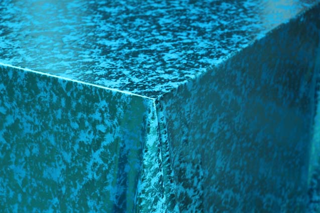 Heavy Metallic lame with a distressed turquoise finish. Available as a 108″ Round to cover 4 ft. rounds or 2 ft round hightop tables to the floor. Limited Quantity