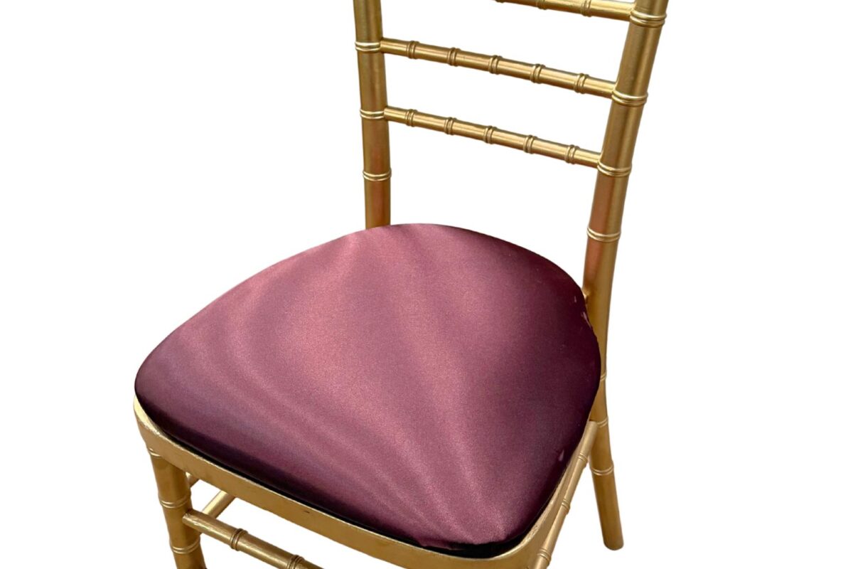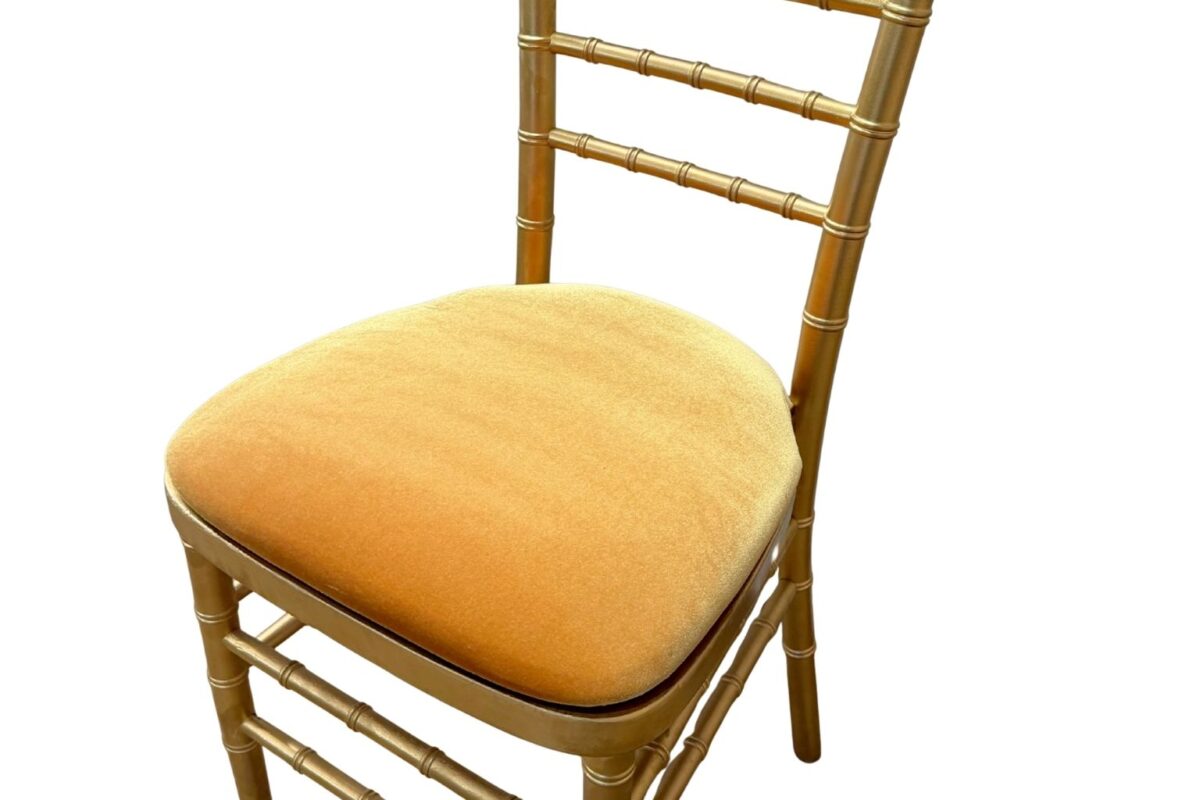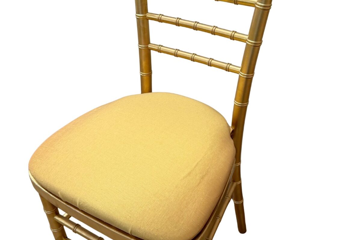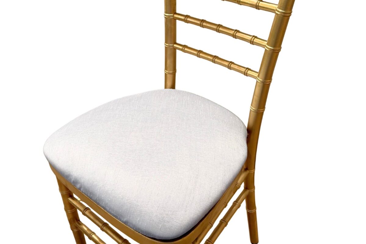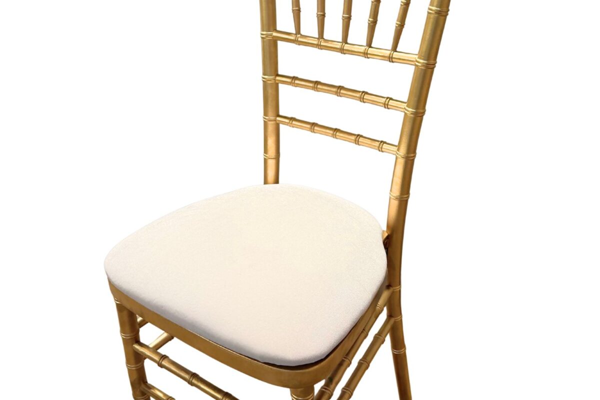 The wooden Chiavari Chair is light, stacks for easy transport, and is easily outfitted with different cushion covers to combine with a variety of tablecloths and looks. Also available in, Dark Wood, Natural, Silver, White and Black.