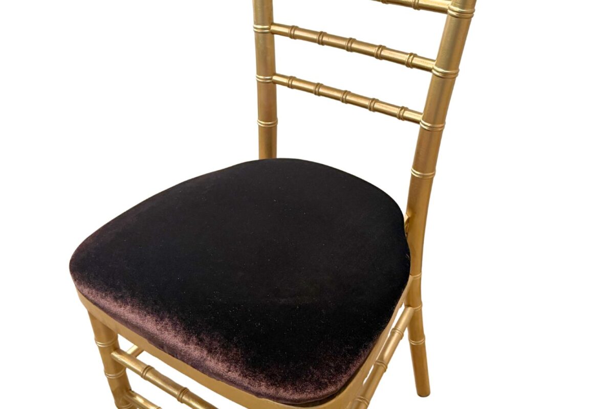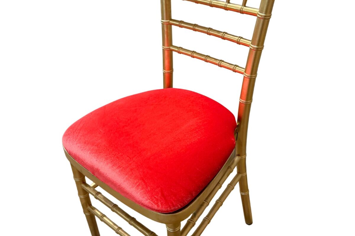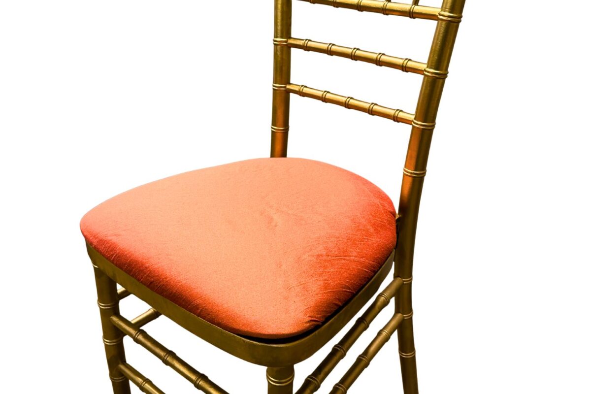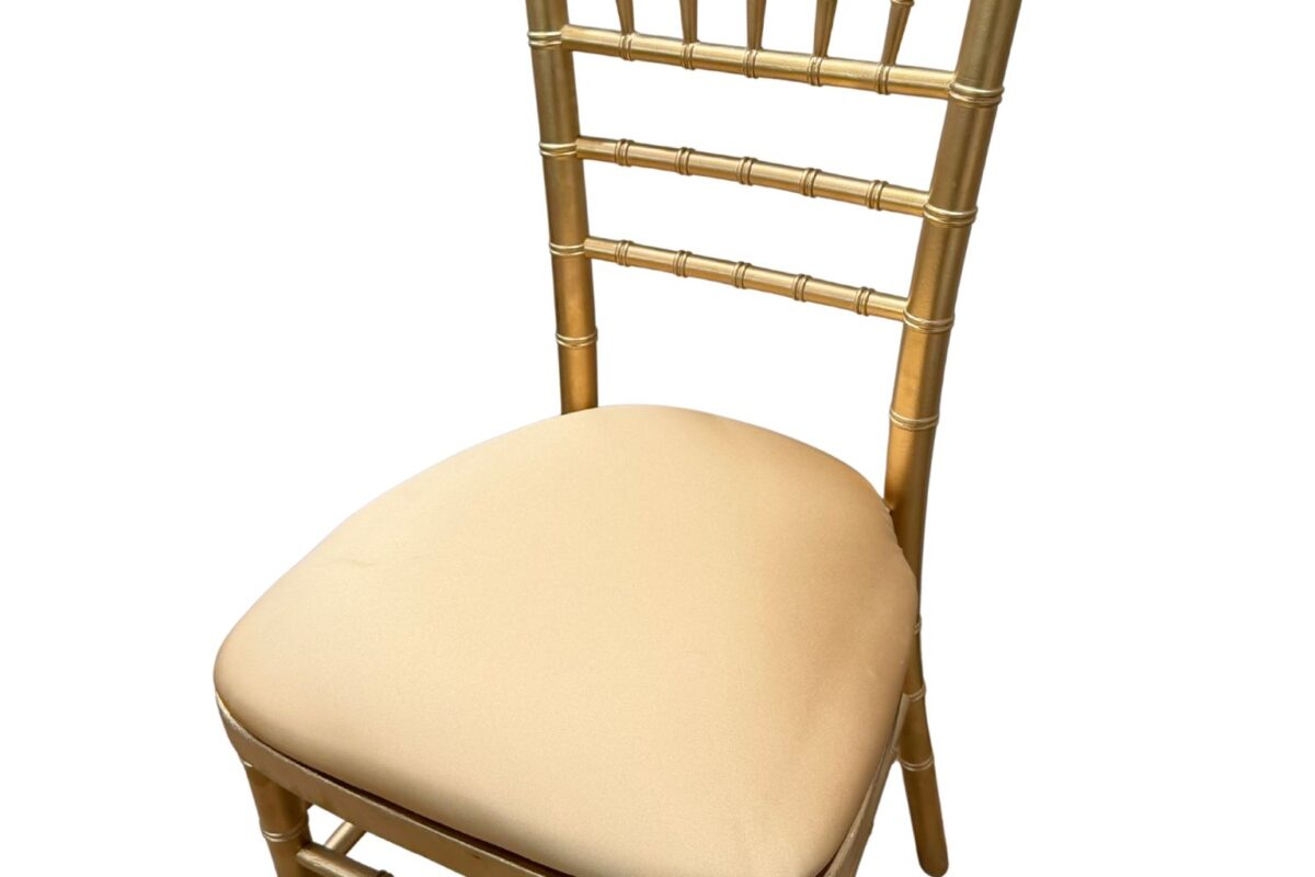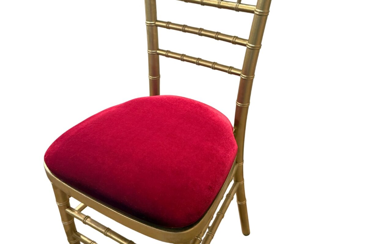 The wooden Chiavari Chair is light, stacks for easy transport, and is easily outfitted with different cushion covers to combine with a variety of tablecloths and looks. Also available in, Dark Wood, Natural, Silver, White and Black.