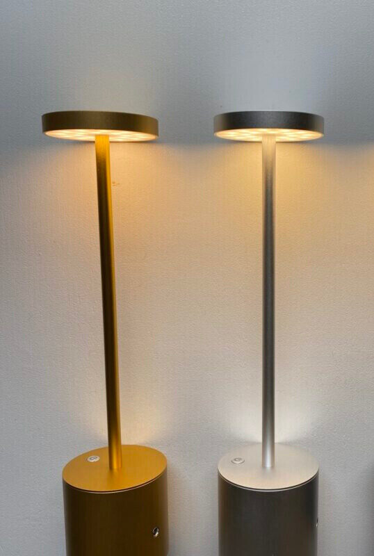 Both modern and elegant rechargeable LED Table Lamps to set the mood for any table. Two brightness levels will soften any table scape. Remains lit for 10 hours on the lower setting and over 8 hours on the brighter setting. Ideal for a rooftop event or outside dinner party. A great option for museums or venues where flame candles are not allowed.