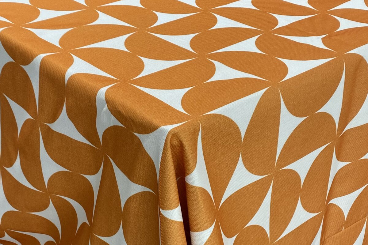 Semi-Mandarin Orange brings a light and happy feeling to any table with its bold colorful design. Also available in Canary Yellow and Powder Blue.